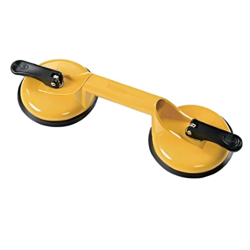 Tay hút kính đôi là dụng cụ chuyên dụng có hai đầu hút chân không, thường làm bằng cao su đặc biệt kết hợp với thân nhựa ABS hoặc hợp kim nhôm. Khi sử dụng, người thợ chỉ cần ép chặt hai đầu hút lên mặt phẳng (kính, gạch, đá hoa cương, panel, tấm tôn...) rồi gạt chốt khóa để tạo chân không.